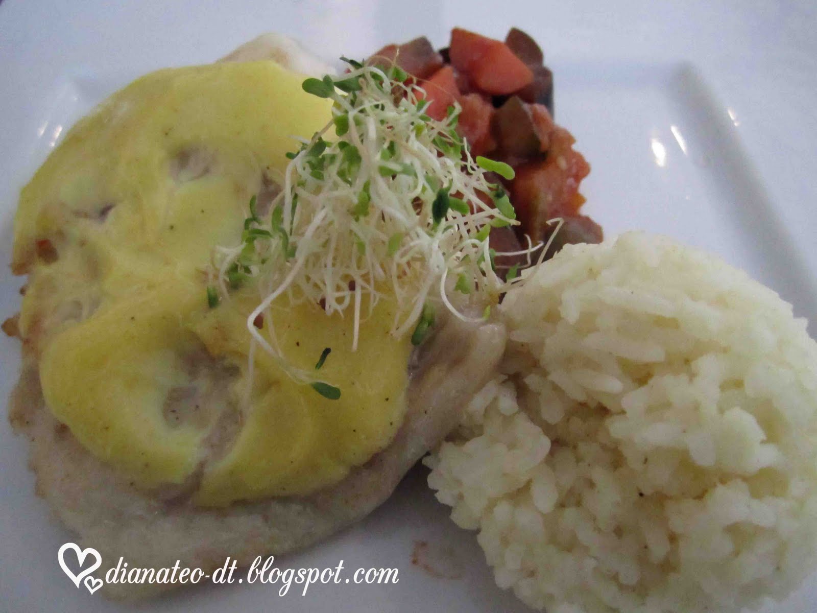 Salmon served with cheese sauce. The fish is so soft and taste perfectly with the cheese.